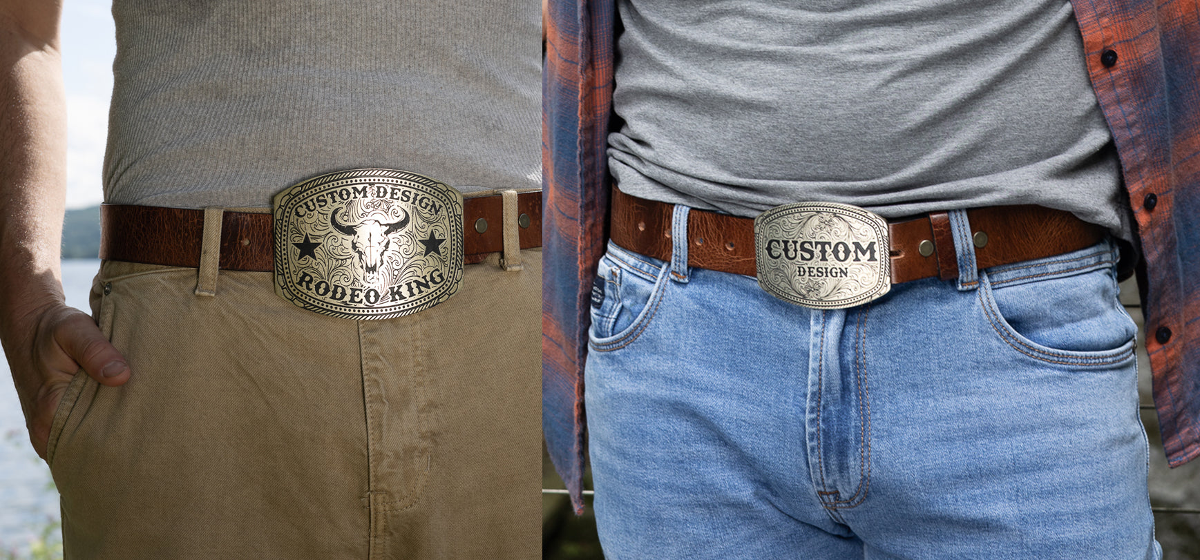 Each custom belt buckle is made to order, deeply etched with your design, and backed by our FOREVER GUARANTEE: "You break it, we fix it." Each buckle features handmade, bi-metal hardware, hand soldered with lead-free solder. Our custom metal belt buckles are individually powder coated to offer superior longevity and a resilient, crisp image.